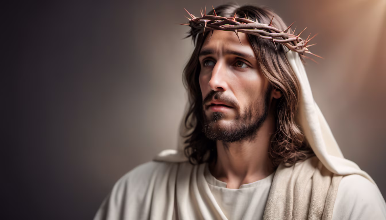 Prompt: jesus christ with crown of thorns wallpaper with blank space, catholic lent