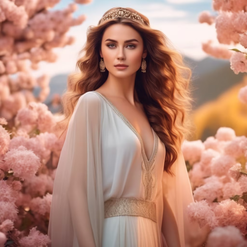 Prompt: \"Generate a cinematic and sharply focused photograph that captures the essence of a Greek woman who embodies qualities of being cute, beautiful, majestic, and exudes sensuality. Set the scene against a backdrop that authentically represents Greece, incorporating elements like enchanting Greek landscapes, iconic architecture, or cultural symbols. Pay meticulous attention to lighting, angles, and composition to accentuate her charisma and allure within the Greek context, creating a visually captivating and culturally rich image.\"