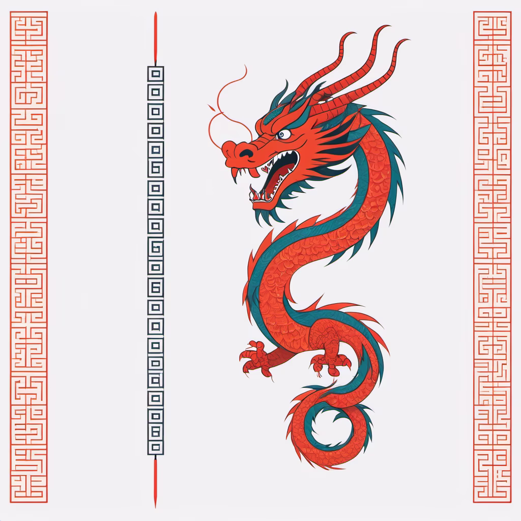 Prompt: Chinese dragon, vector illustration, line drawing, China-Chic, Chinese style, Paper Cuttings, pictures, 8k, exquisite