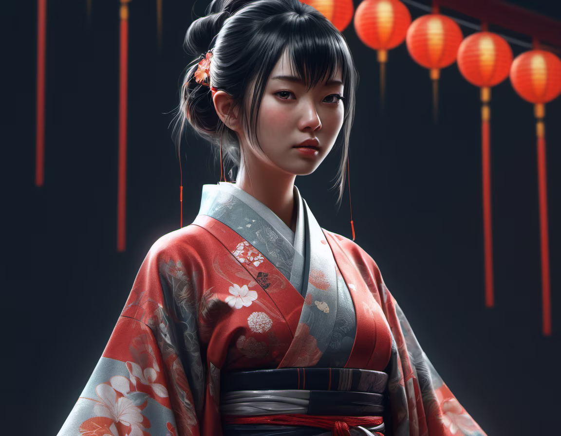 Prompt: Beautiful illustration of a Japanese girl adorned in traditional attire (kimono), delicate cherry blossoms falling around her, serene expression capturing both cultural elegance and natural beauty in a harmonious visual composition