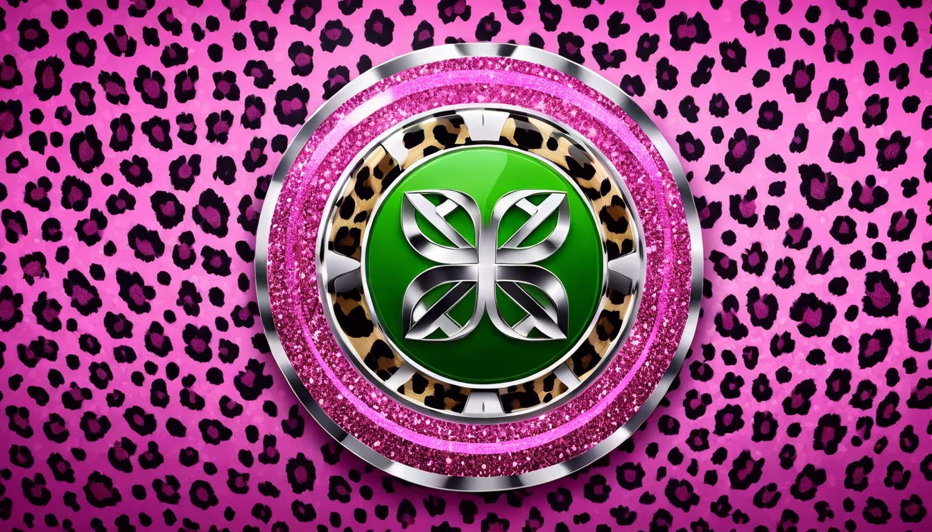 Prompt: skoda logo with pink glitter with background with leopard pattern prin