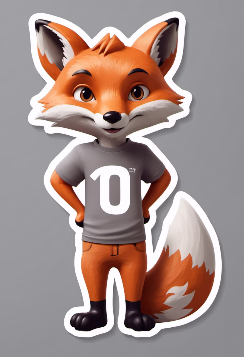 Prompt: Fox cub wearing t-shirt that says the word in bold block letters ((TEN)) sticker, daz3d, anthropomorphic, popart