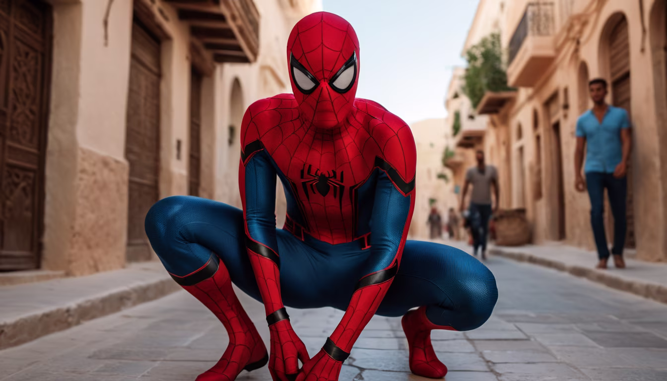 Prompt: Spider-Man in Tunisia street ,by Marjorie M. Liu and leonardo da vinci and jim mahfood,masterpiece