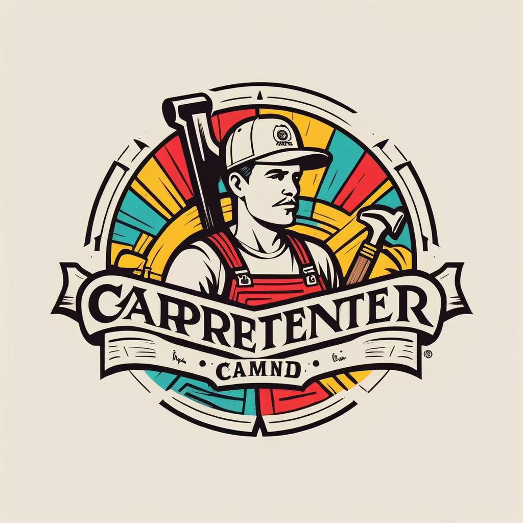 Prompt: Simple and modern carpenter brand logo , illustration, crisp line, Shepard Fairey, thick black outlines, colorful, white background