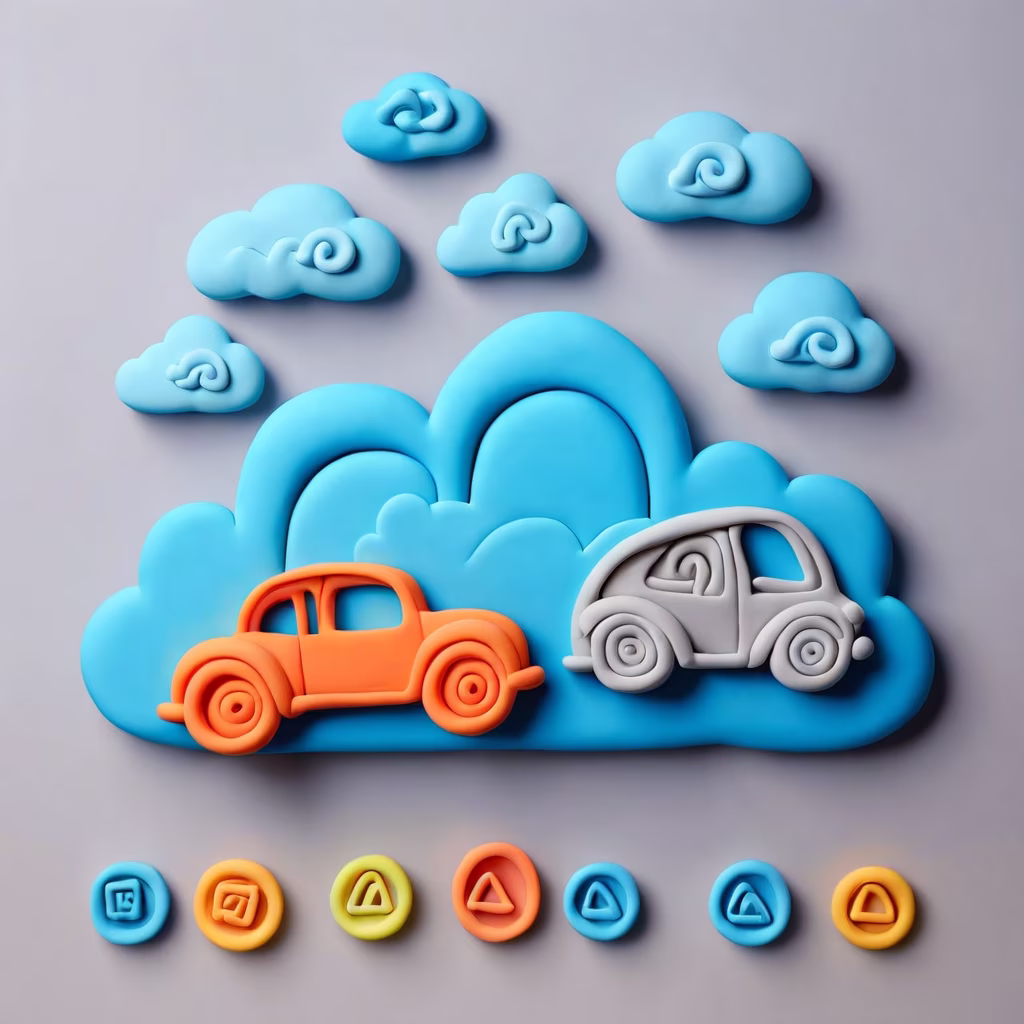 Prompt: Design a logo that combines the shapes of cars and clouds, and at the same time highlights the elements of cloud computing and the Internet. It must have a sense of lines, and the overall color should be mainly blue, with a simple style.
