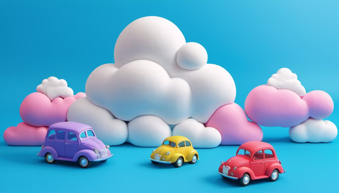 Prompt: cartoony cars on the street miniature bubble shape Care Bears cars up in the clouds surrealcore unrealistic beautiful cartoony world of clouds, intense fantasy, abstract world of pastel colors only, soft cloud texture, cartoon hd 3d 32k cool characters with wings