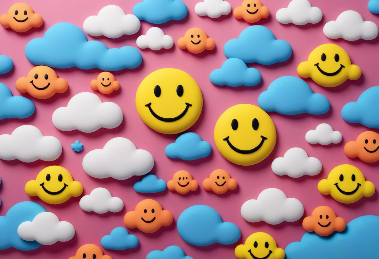 Prompt: right justified facebook profile background image of smileyface clouds , subtle gradient 🌈✨