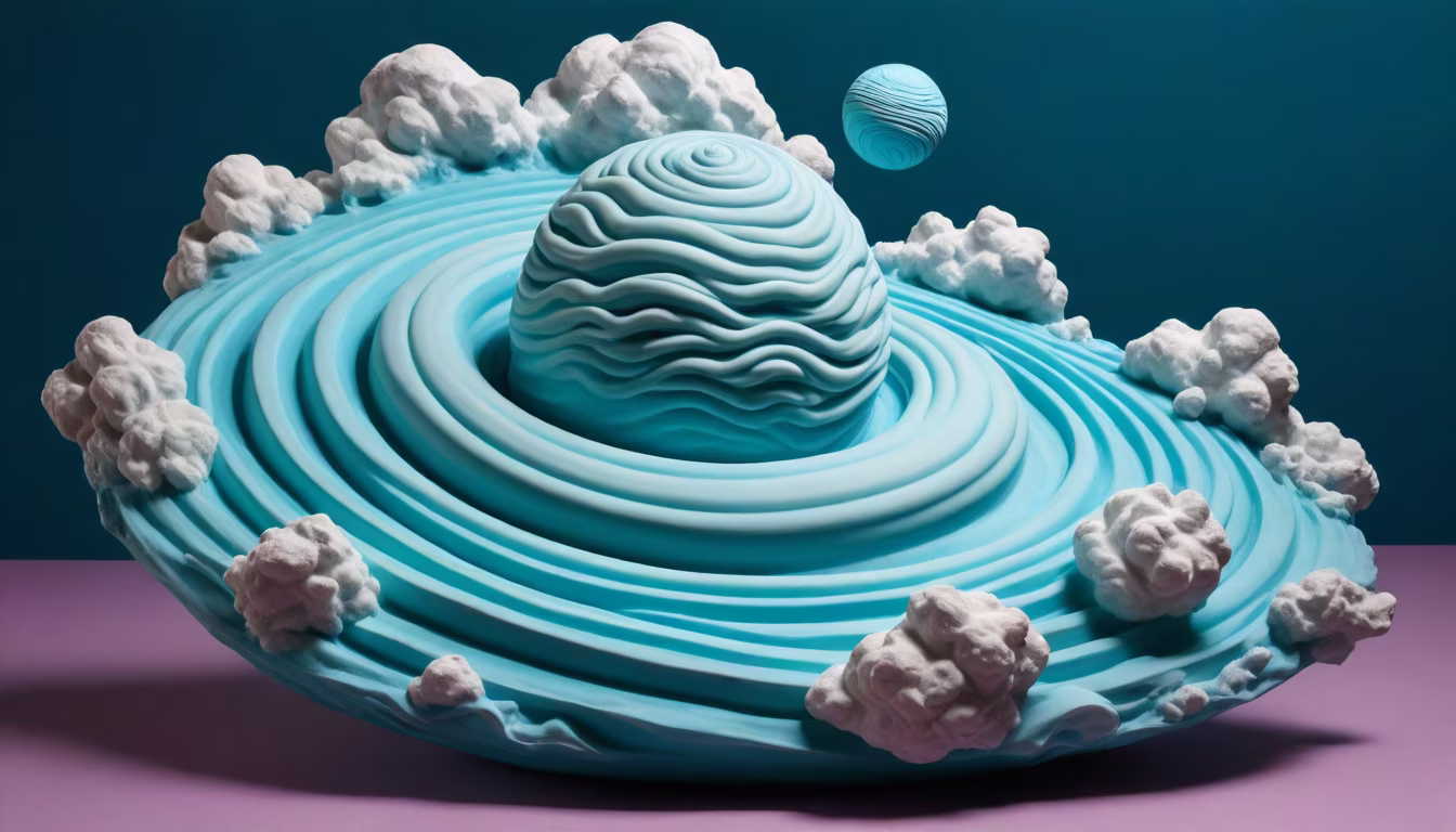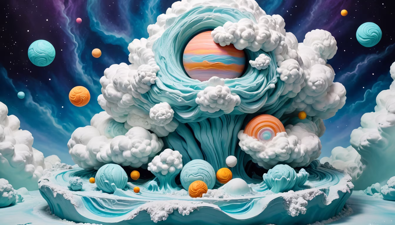 Prompt: Visualize the expansive icy expanse of Uranus, with massive swirling clouds and a sideways spin. A cosmic dance of colossal cyclones creates an otherworldly atmosphere.