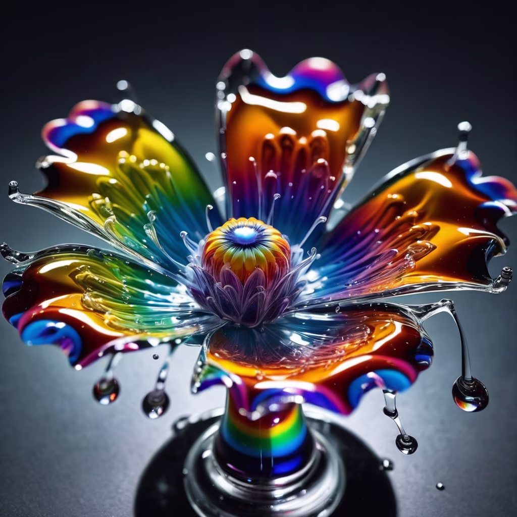 Prompt: Dale Chihuly glass flowers in a spaceship