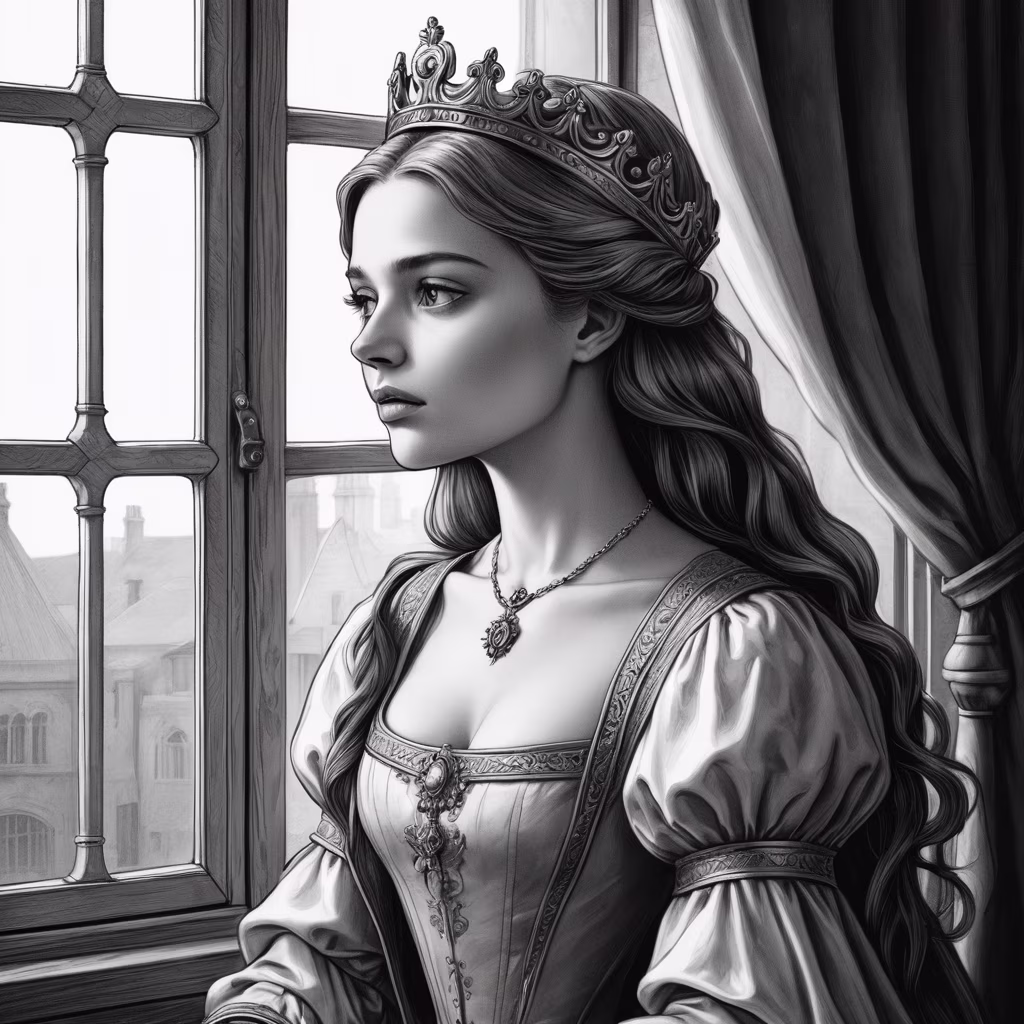 Prompt: https://media.discordapp.net/attachments/1049483356506685493/1180712530633576468/realistic_book_illustration_a_young_queen_looking_out_the_window_very_nostalgic_sadness_realistic_medieval_photo_nostalgic_lighting_cool_tones_mela_style-Cinematic_seed-0ts-1701574147_idx-0.png?ex=657e6b3b\u0026is=656bf63b\u0026hm=68d7cf406171760492f7218394db0775434939b5d91d367a4ae5f515d482ffa7\u0026=\u0026format=webp\u0026quality=lossless\u0026width=662\u0026height=662 black and white , line art