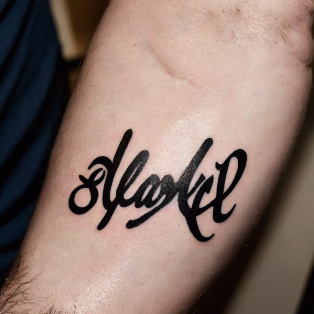 Prompt: a strong Man, with dark hair, covered with tattoos, with a little demon on her shoulder, Shadows around him