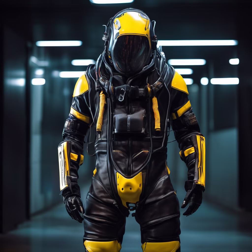 Prompt: Cyberpunk clothing. This is a gorgeous style suit, expensive, and has many accessories. jpg orpng