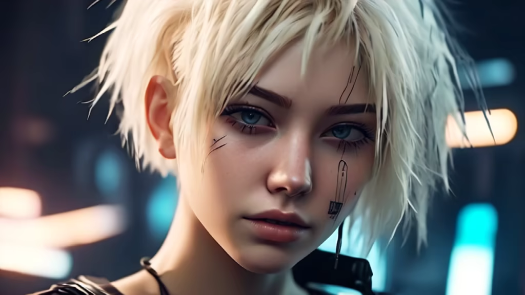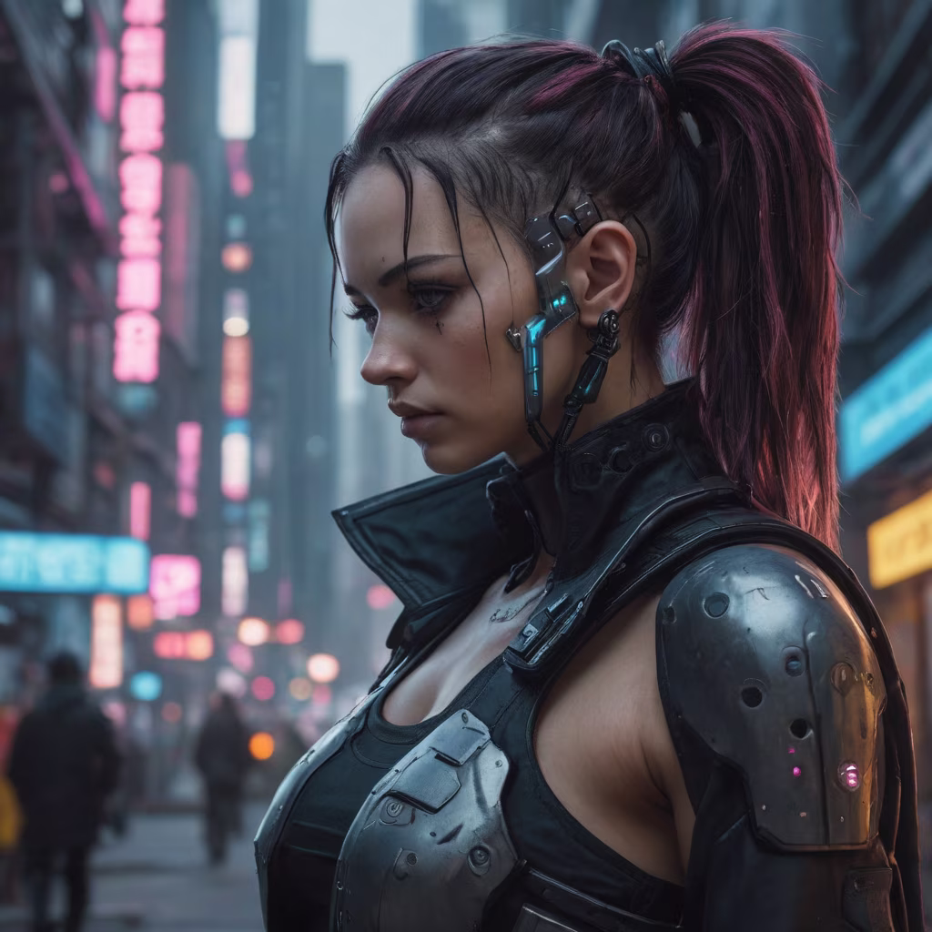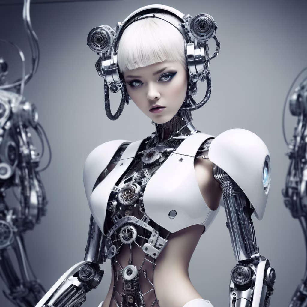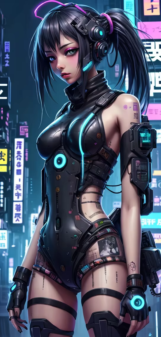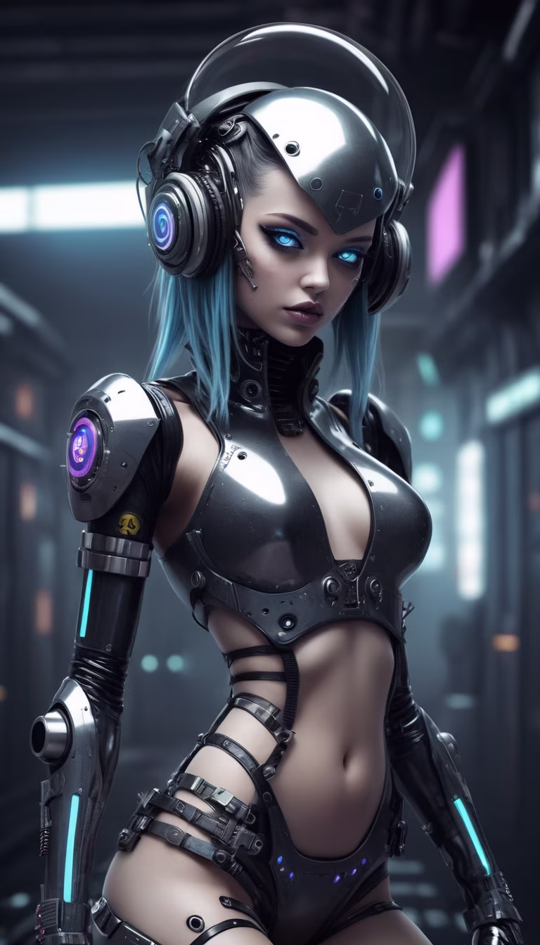 Prompt: voidpunk android cyber girl, technologically advanced parts, hyper futuristic, hypercore, astropunk