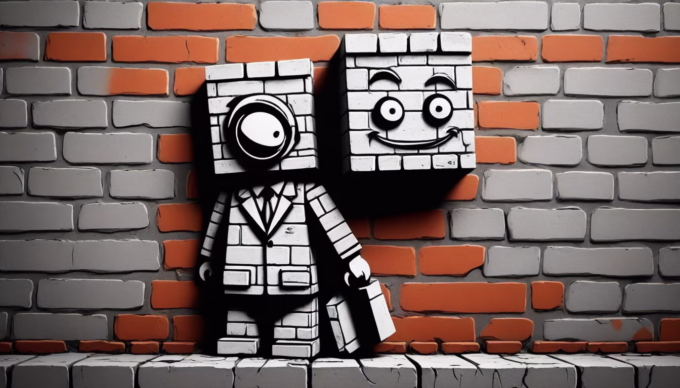 Prompt: scary brick made of concrete Banksy painting hd spray paint 32k 3d amazing character designs