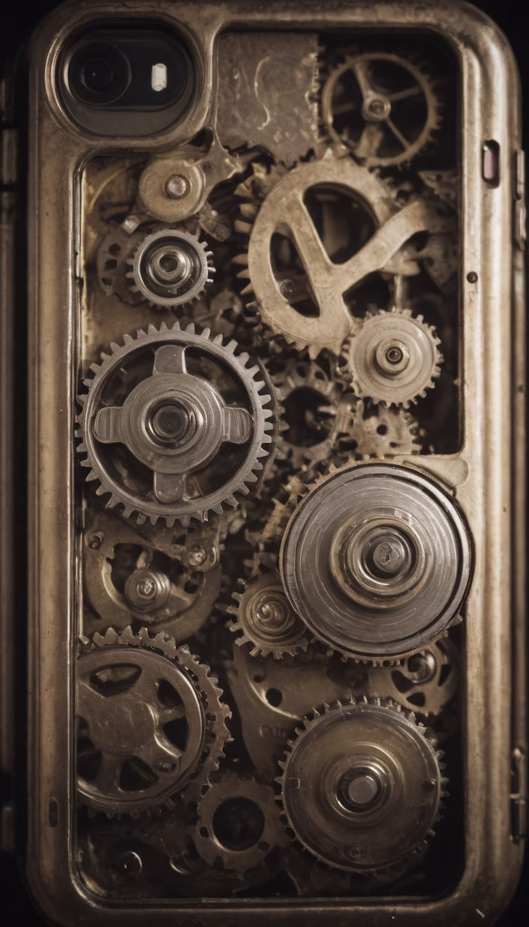 Prompt: circuit board gold electronic gears phonecase hd 3d 32k