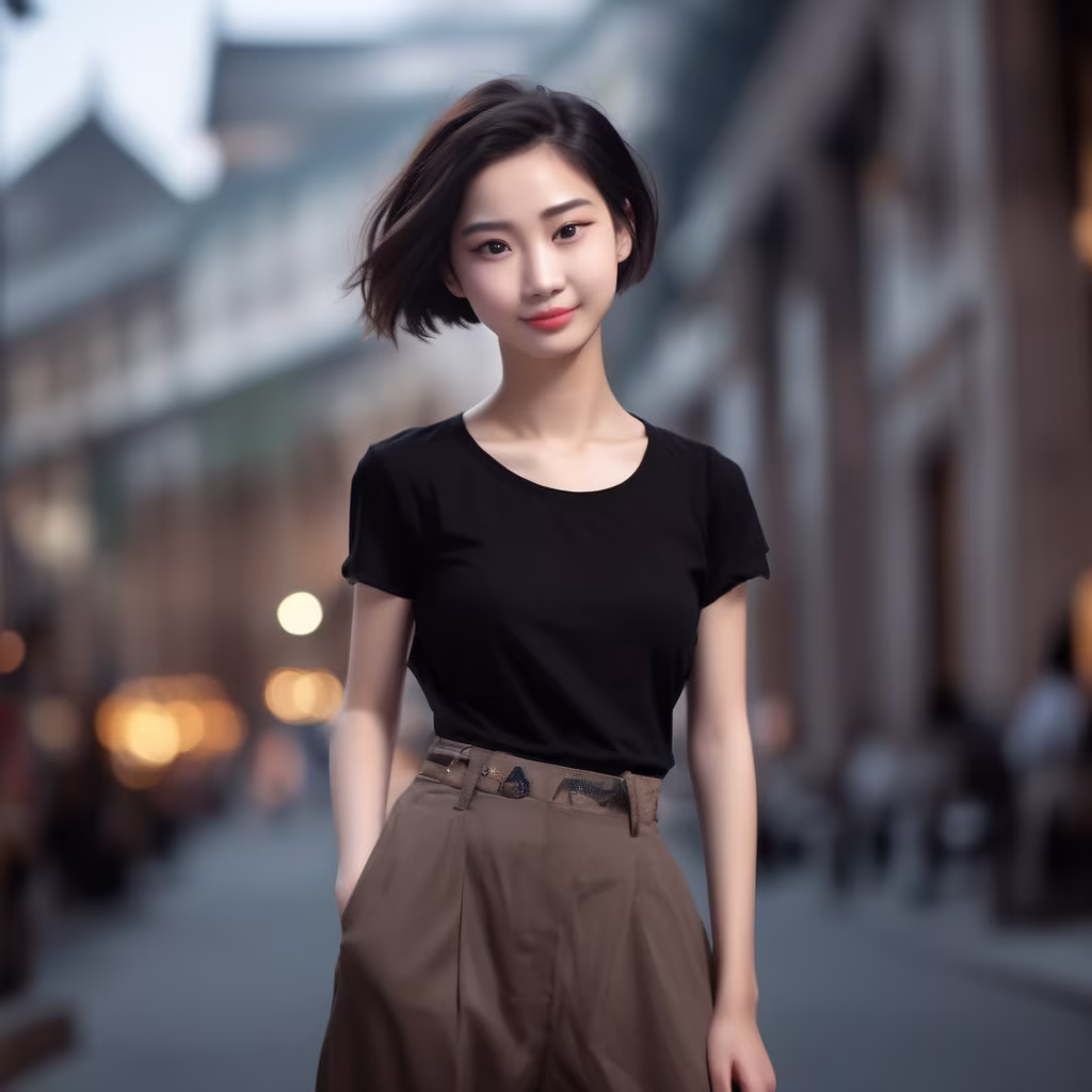 Prompt: She exudes astonishing beauty. Her facial features are delicate, with a poised and three-dimensional allure. Bright and expressive eyes captivate with a lively sparkle. Her slender figure showcases graceful curves, and her skin is as smooth as porcelain. Luxuriant, flowing hair adds a touch of elegance, each strand weaving a tale of confidence and charm. Impeccably dressed, she radiates a sense of fashion, always finding the most fitting styles. Her appearance not only leaves a lasting impression but also highlights her unique charisma and self-assurance.