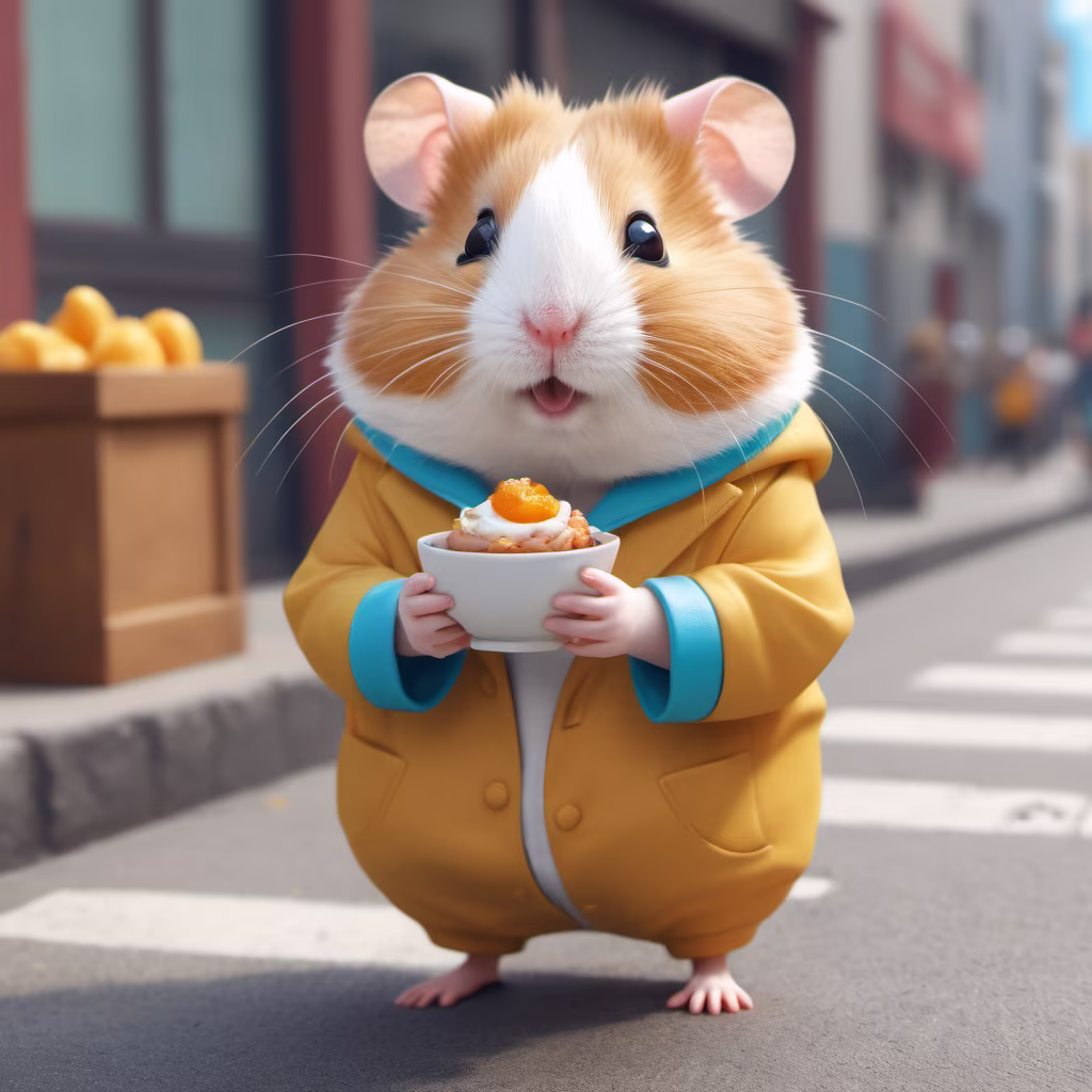 Prompt: a hamster,have breakfast,street photo shoot,full body shot,kawaii style,charming cartoon character,photorealistic technique,mass surrealism