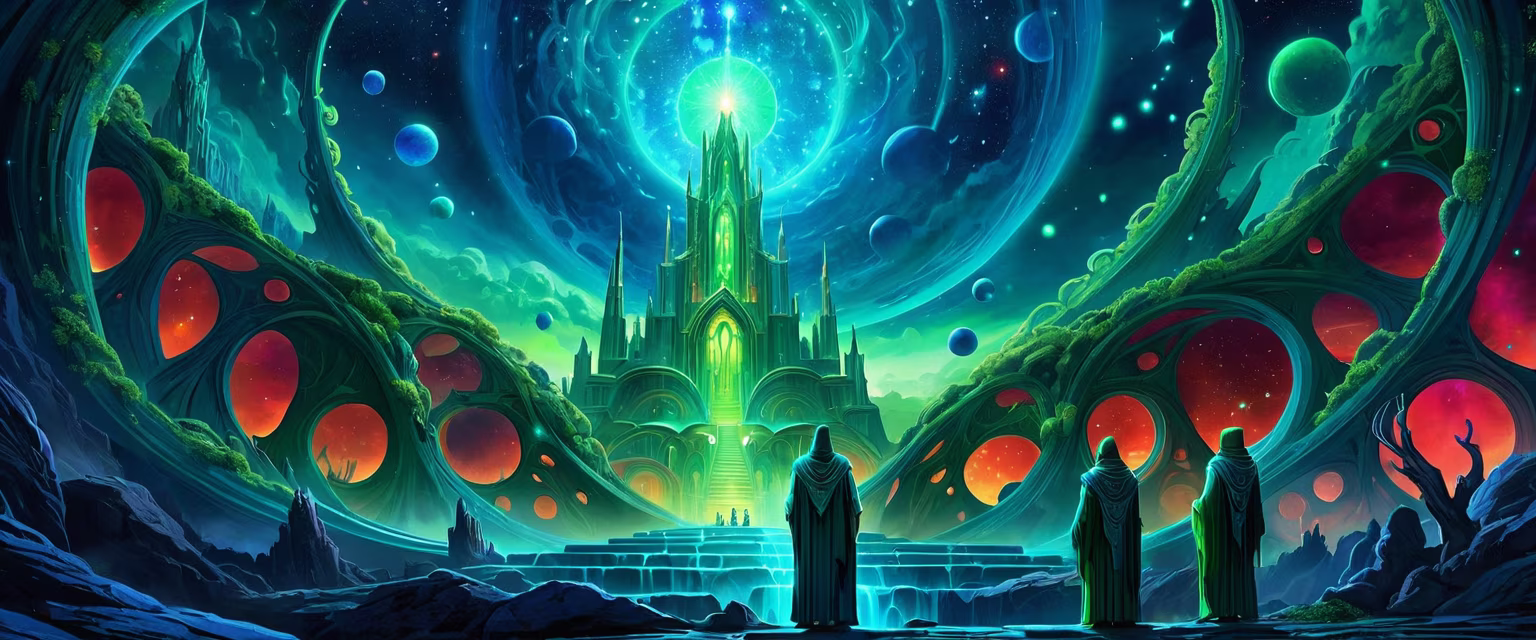 Prompt: extremely detailed quantum psychedelic complex dark blue green red bioluminescent giant massive ultimate sanctum sancturum, view is extremely extremely extremely stellarful