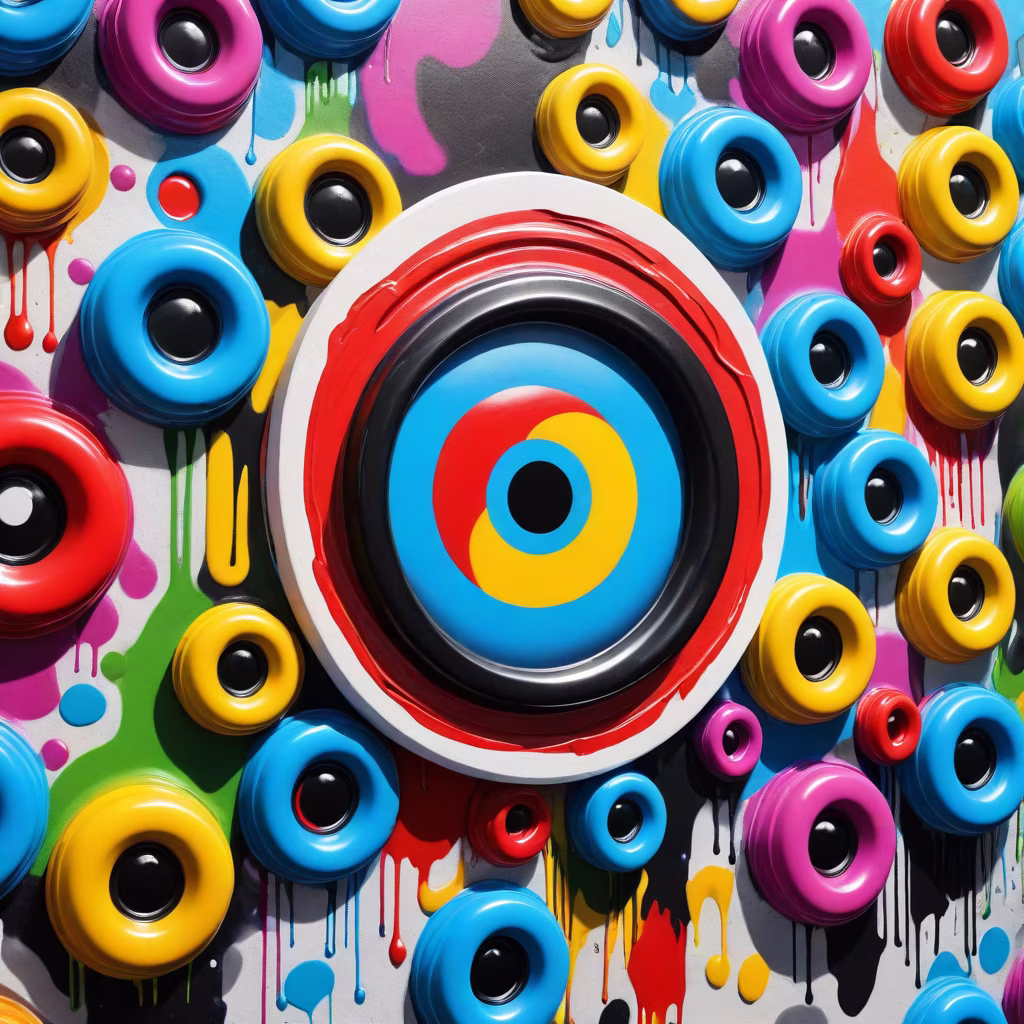 Prompt: many bullseyes on walls, graffiti art, splash art, street art, spray paint, oil gouache melting, acrylic, high contrast, colorful polychromatic, ultra detailed, ultra quality, CGSociety