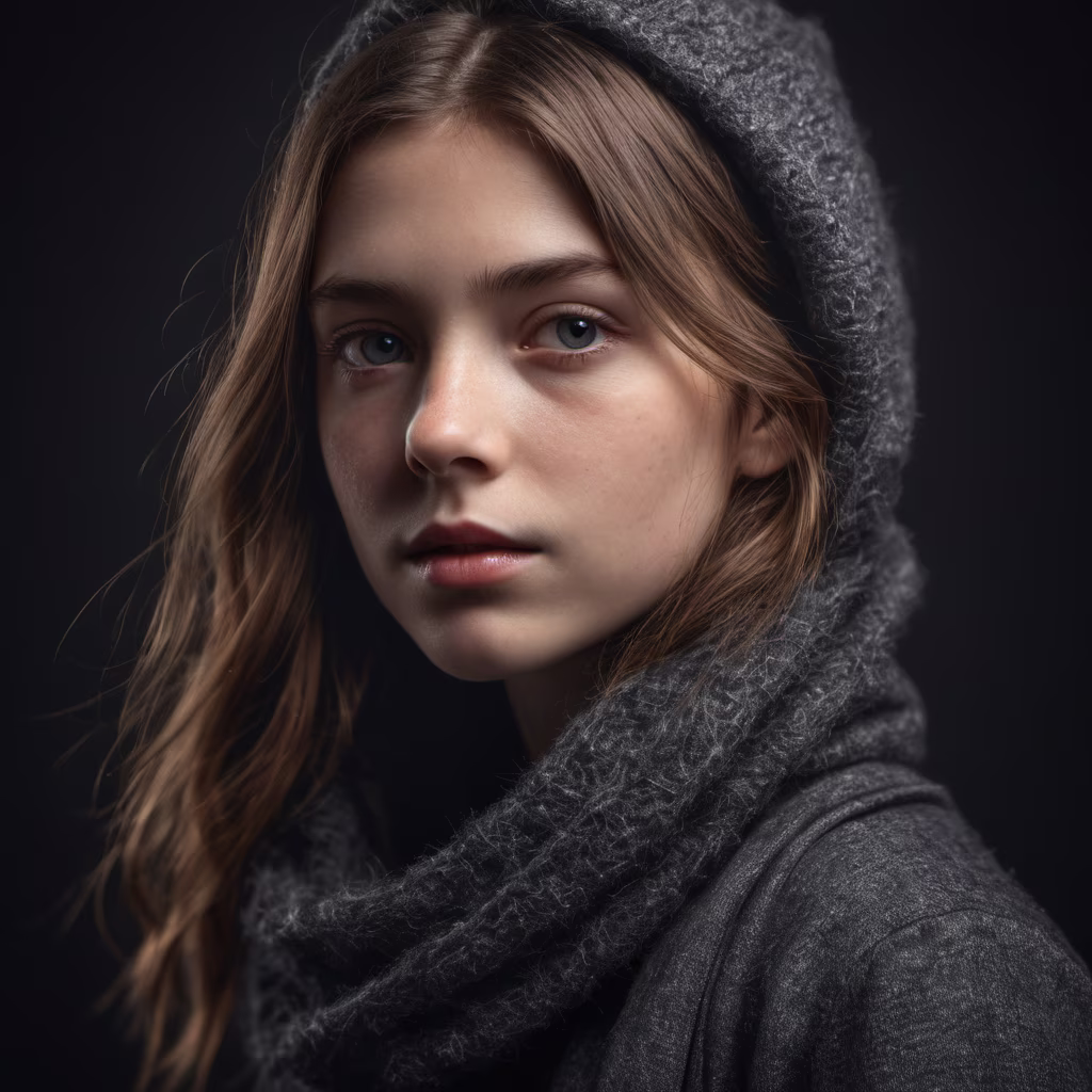 Prompt: beautiful girl with blonde hairs looking directly in front, cute realistic 8k