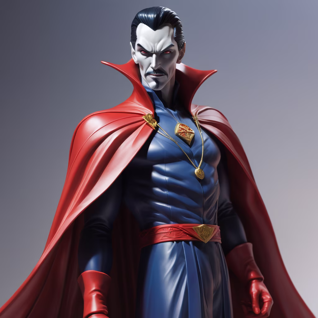 Prompt: a close up of a statue of a man dressed as dracula, style of alex ross, by Alex Ross, alex ross style, ross tran and bayard wu, inspired by Alex Ross, by Yang J, doctor strange, by Arthur Pan, artgerm and genzoman, dr strange, akehiko inoue and ross tran, snoop dogg as doctor strange