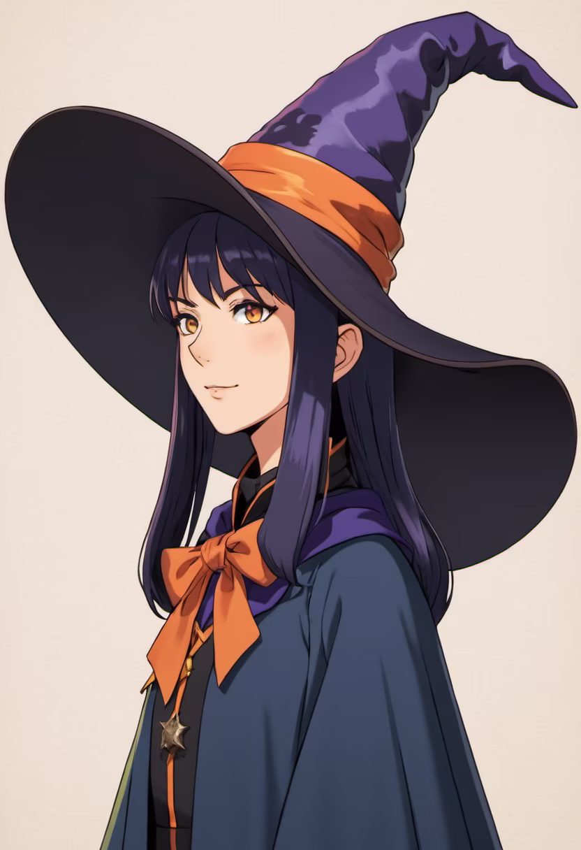 Prompt: busty,silver hair, orange eyes, full body shot, woman, adult woman, witch hat,witch, witchcraft, long eyelashes,pestañas abundantes, beautiful eyes,potions, old cabin, Studio Ghibli