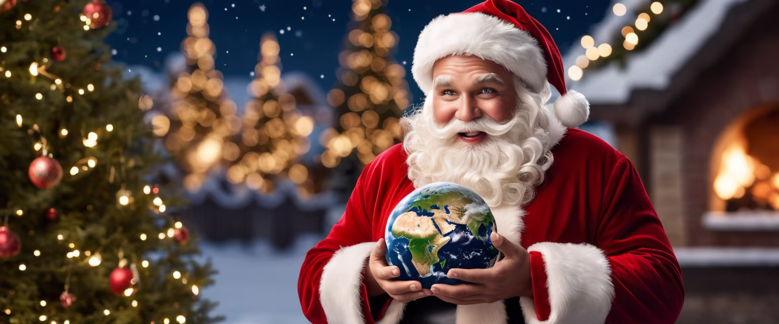 Prompt: santa claus running with a child, highly realistic photo in orange and blue colors, fantastic image with 35mm canon lens