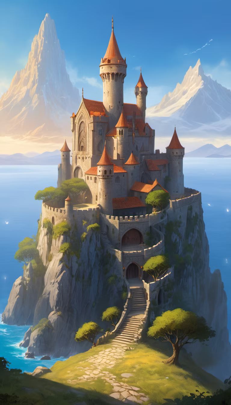 Prompt: a medieval castle, fantasy art, digital art, by john avon, matte painting, 16K masterpiece, high fantasy, dragons, knights, magic, lord of the rings, game of thrones, dungeons and dragons