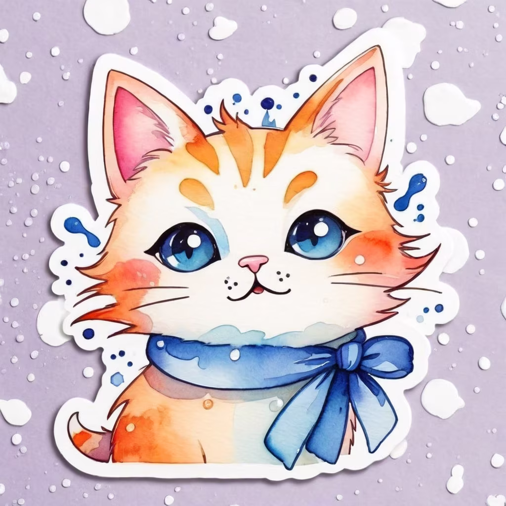 Prompt: 2D logo, very cute, Printable sticker about minimal cute cartoon cat, white background