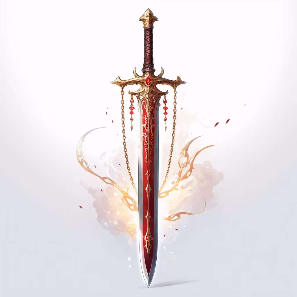 Prompt: A sword with a human heart embedded in the blade. Gloomy atmosphere. Red veins on the steel