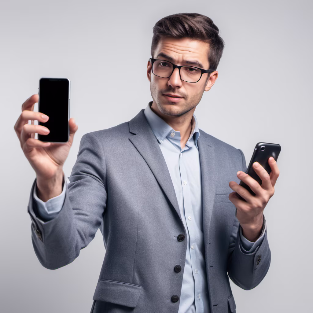Prompt: Close-up of a hand hesitantly hovering over a smartphone screen, depicting indecision.