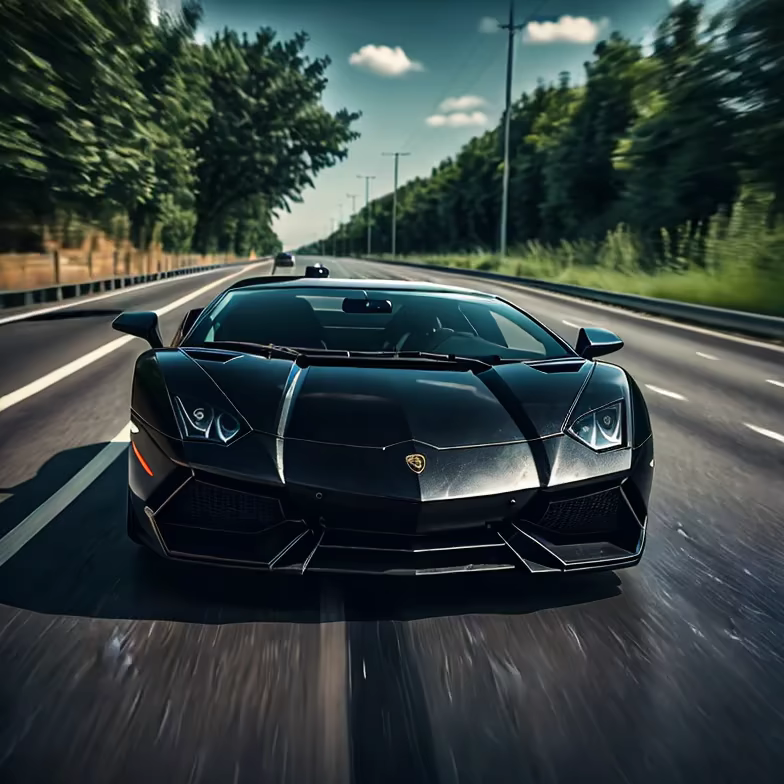 Prompt: a black Lamborghini at a superfast speed on a highway captured on sports camera, UltraRealistic, HDR, 8K