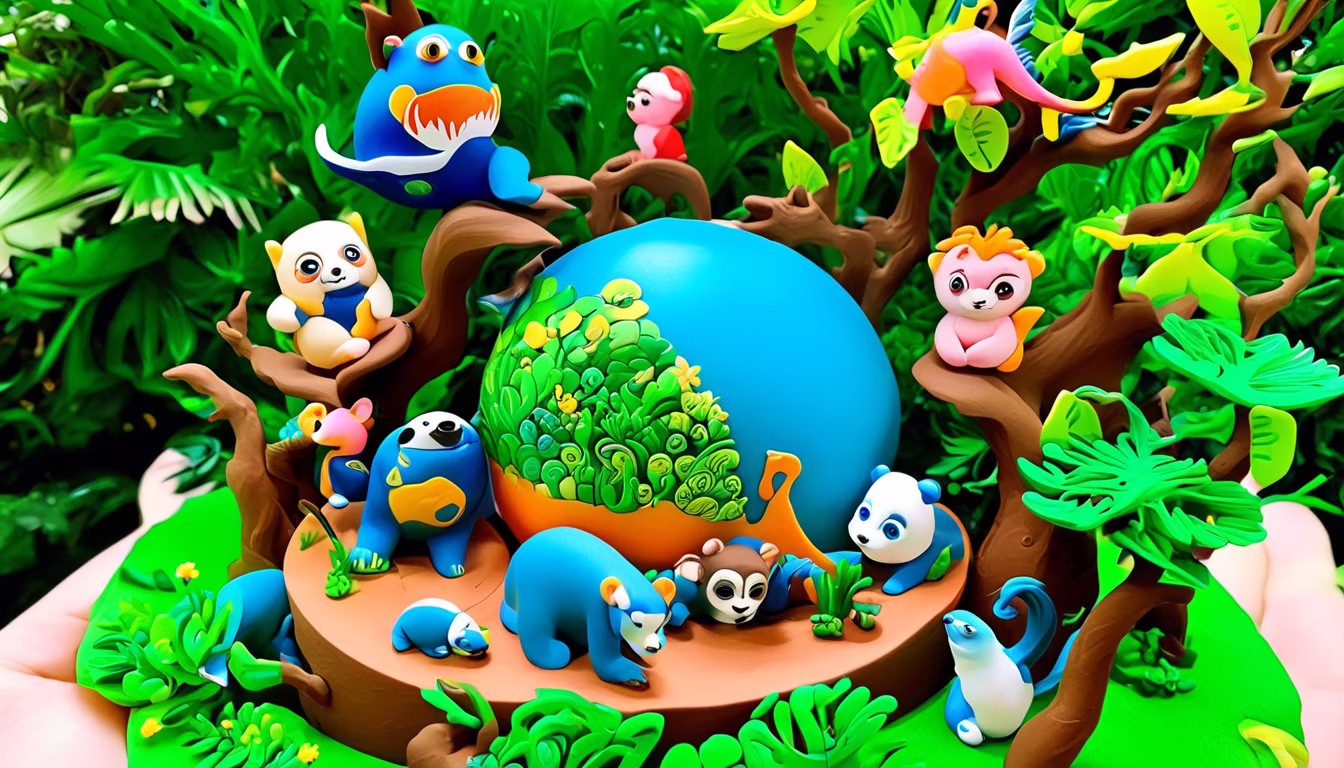 Prompt: an ethereal planet moon with wildlife🌳🌿🪵, dragons, pandas, fish that fly in the sky, birds that swim, a monkey that steals money hd 3d 32k photo fish eye lens, with people living there but the are miniature characters