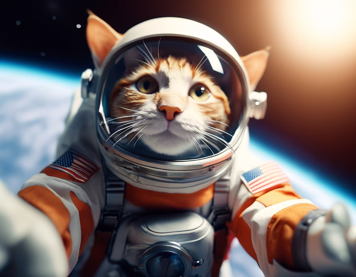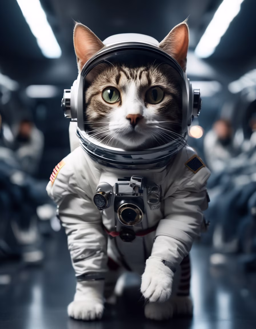 Prompt: render,cat astronaut(floating in space), hyper realistic(SSS) (stable ray tracing) (DOF), wide shot (subject in focus)
