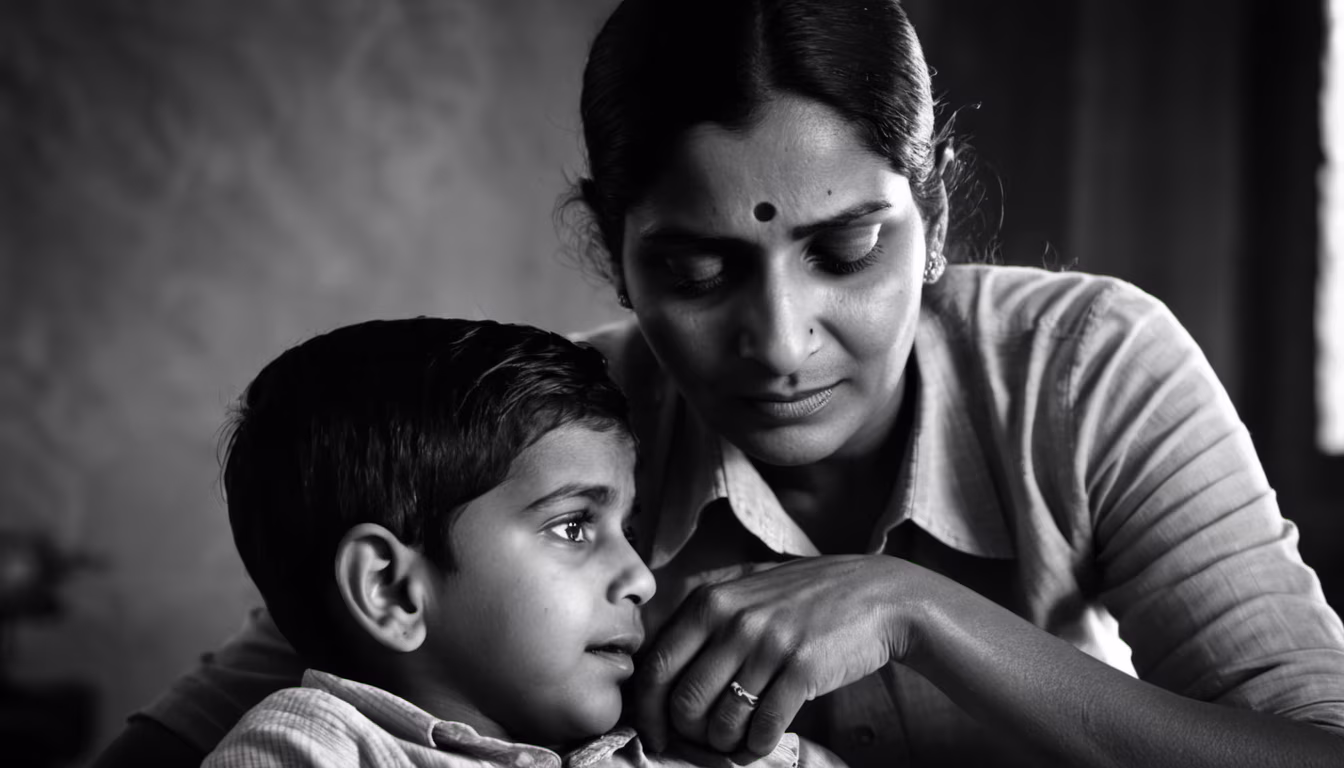 Prompt: indian mother looking at her 13 year old child lovingly