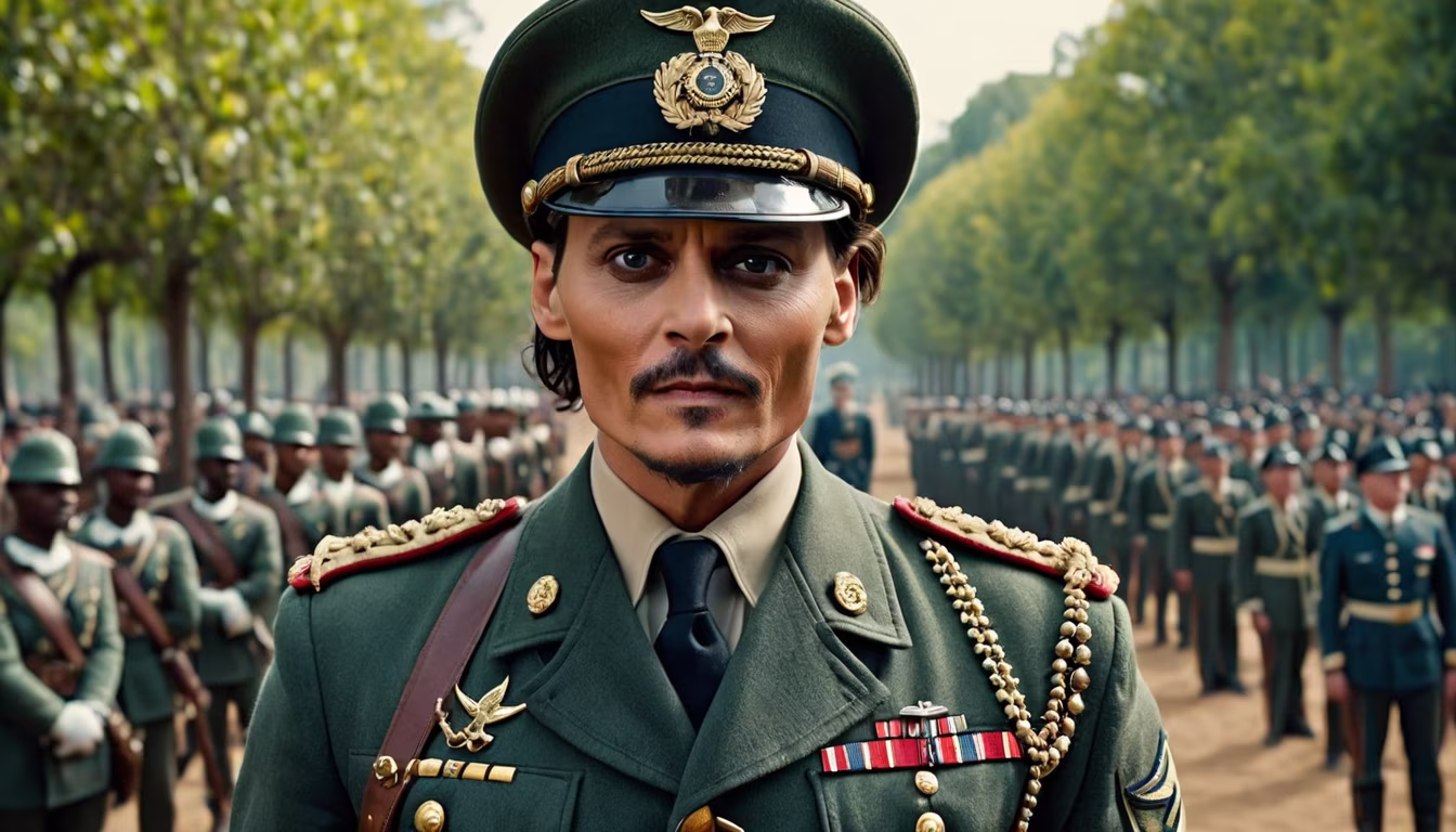 Prompt: Johnny Depp become a soldier, wearing soldier uniform, standing straight