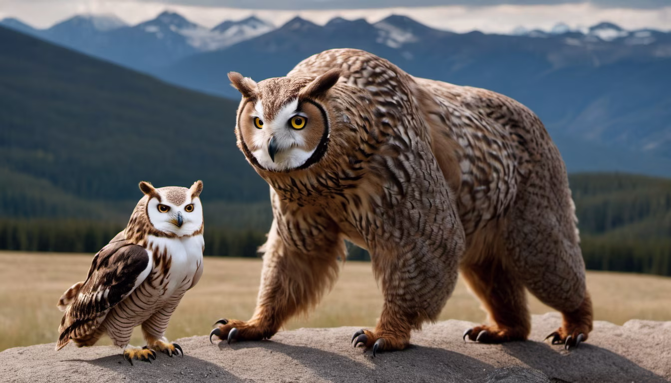 Prompt: real netional geography photo of real chimera of owl and bear owl bear