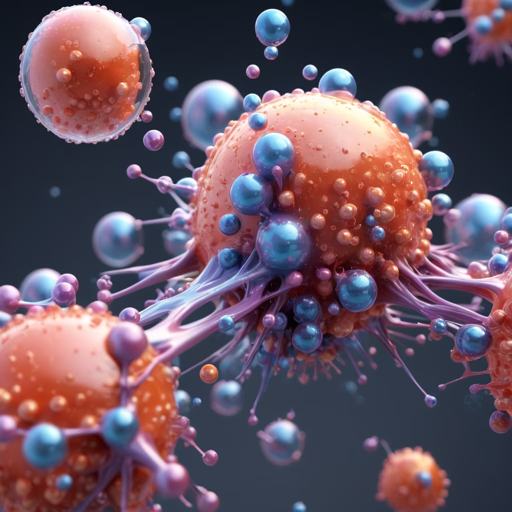 Prompt: water droplets filled with DNA helix, dramatic lighting, 3D rendering, high quality