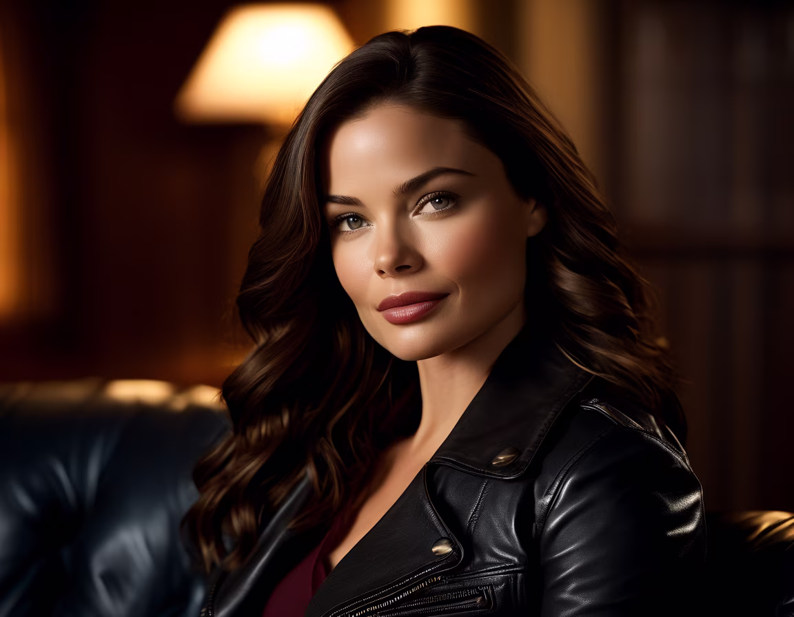 Prompt: 8k, ultra-realistic photo (of a young 17-year-old++) of Tom Welling in the image of Clark Kent(thin face++),(high cheekbones, bangs on the forehead, long dark hair), (detailed facial skin, clearly drawn eyes, pupils,iris of the eyes), close-up,(frame from the movie), in a black leather jacket and jeans, next to Kristin Kreuk (Lana Lang), they are sitting on the couch in the house, at Smallville farm, depth of field,professional cinematic lighting,shot by Hasselblad X2D,fine details in detail ,real photo