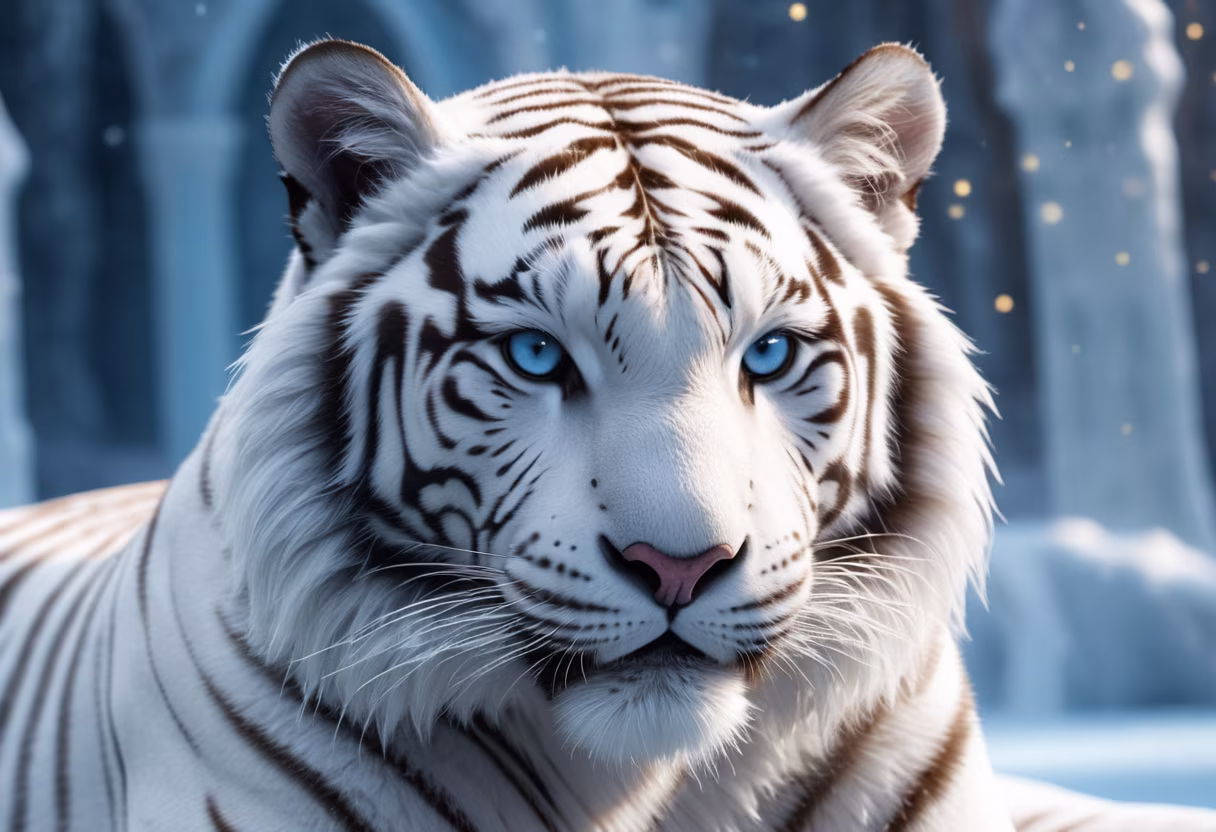 Prompt: white tigers, snow owls, snowy bunnies, funny, brilliant, scary hd 3d 32k