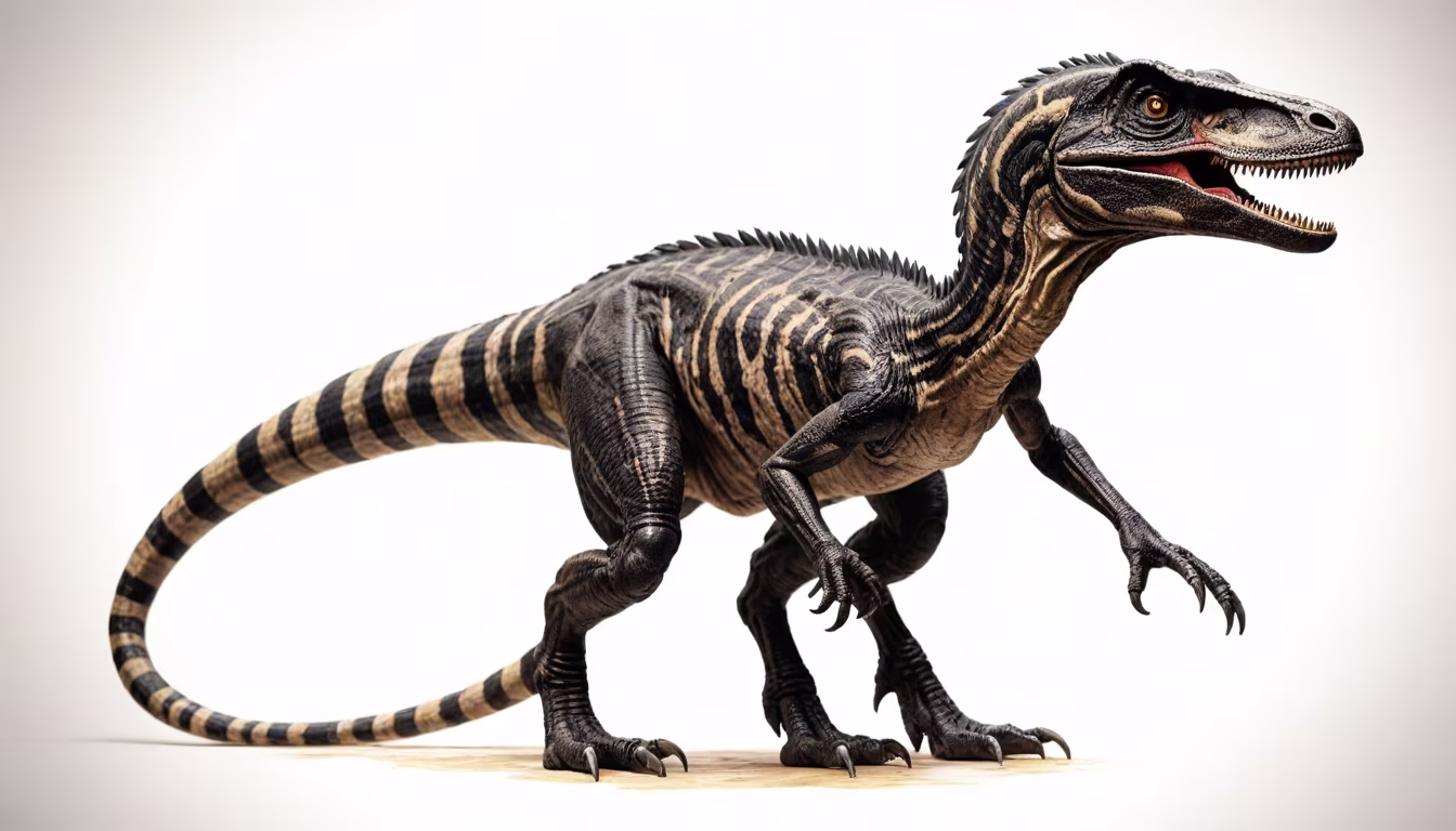 Prompt: velociraptor,Three-view drawing generates three views, front view, side view and back view,White background,UHD