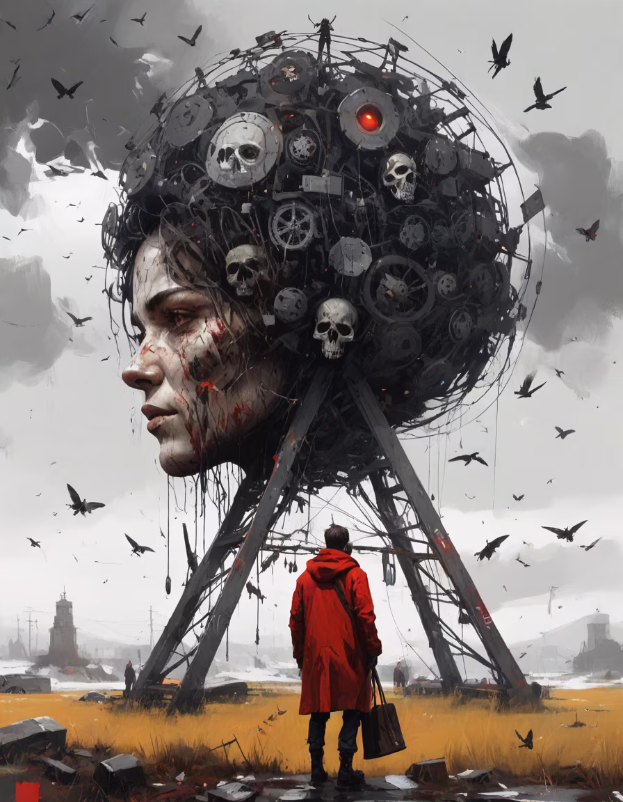 Prompt: by ((Nick Alm)) and (Mark demsteader), screaming dna helix priestess , genetic lines, chiaroscuro