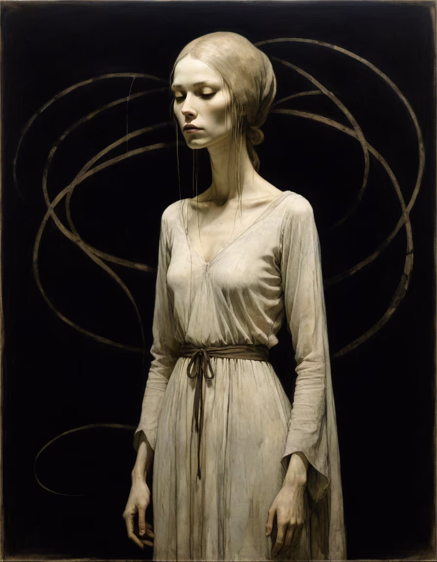 Prompt: by John Harris, dna helix priestess , genetic lines, chiaroscuro