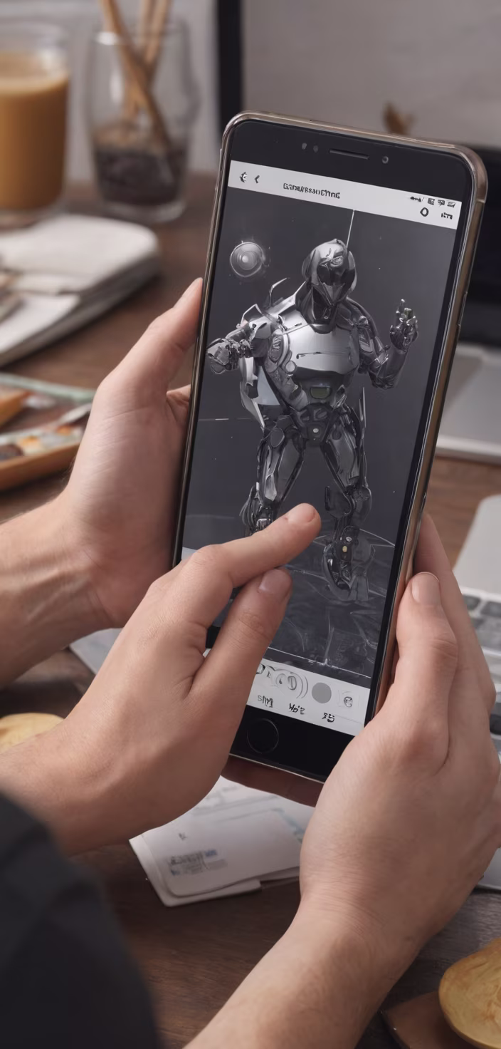 Prompt: 3D interaction, AR, a very useful tool with a sense of technology, making users very happy and avoiding human hands