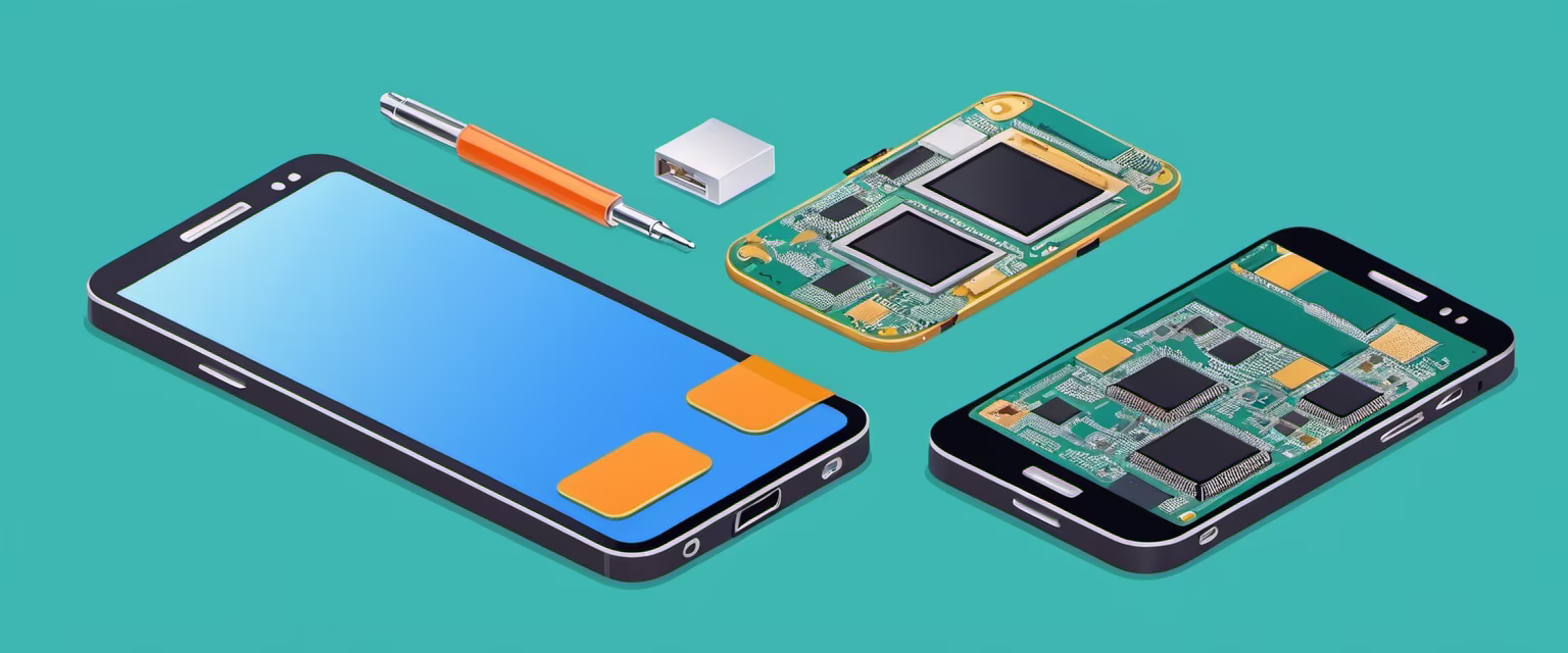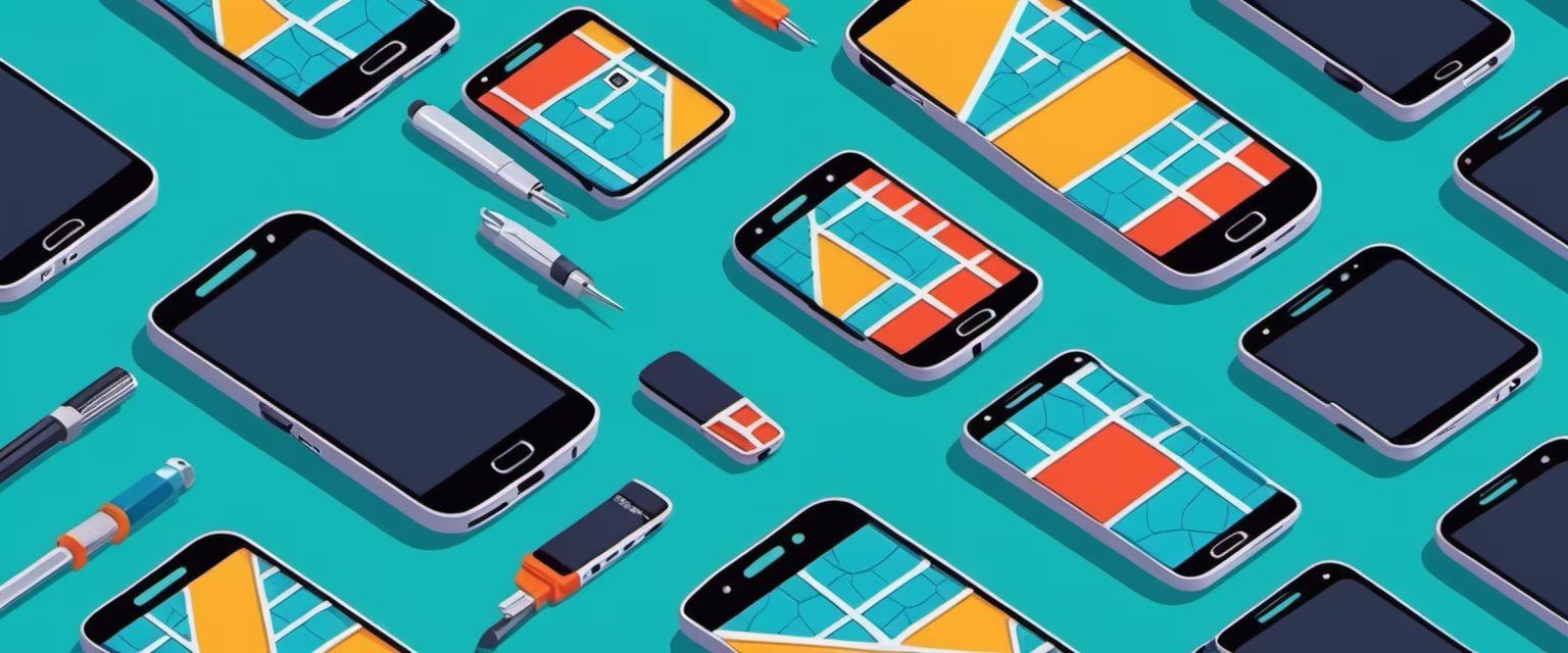 Prompt: Isometric clean pixel art image cutaway of Digital products, including phones, laptop, pad, bluetooth earphone