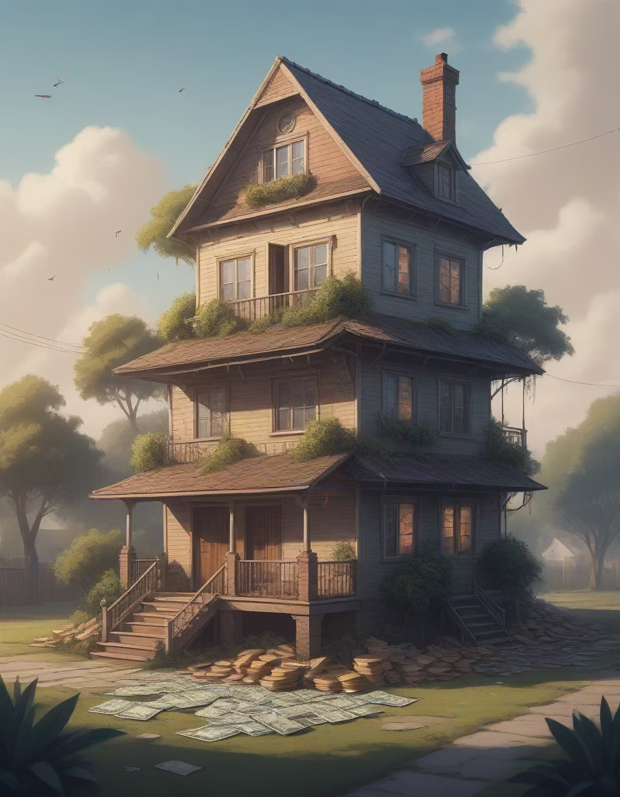 Prompt: House on a white background, no surrounding, Realistic Oil Painting, Low resolution