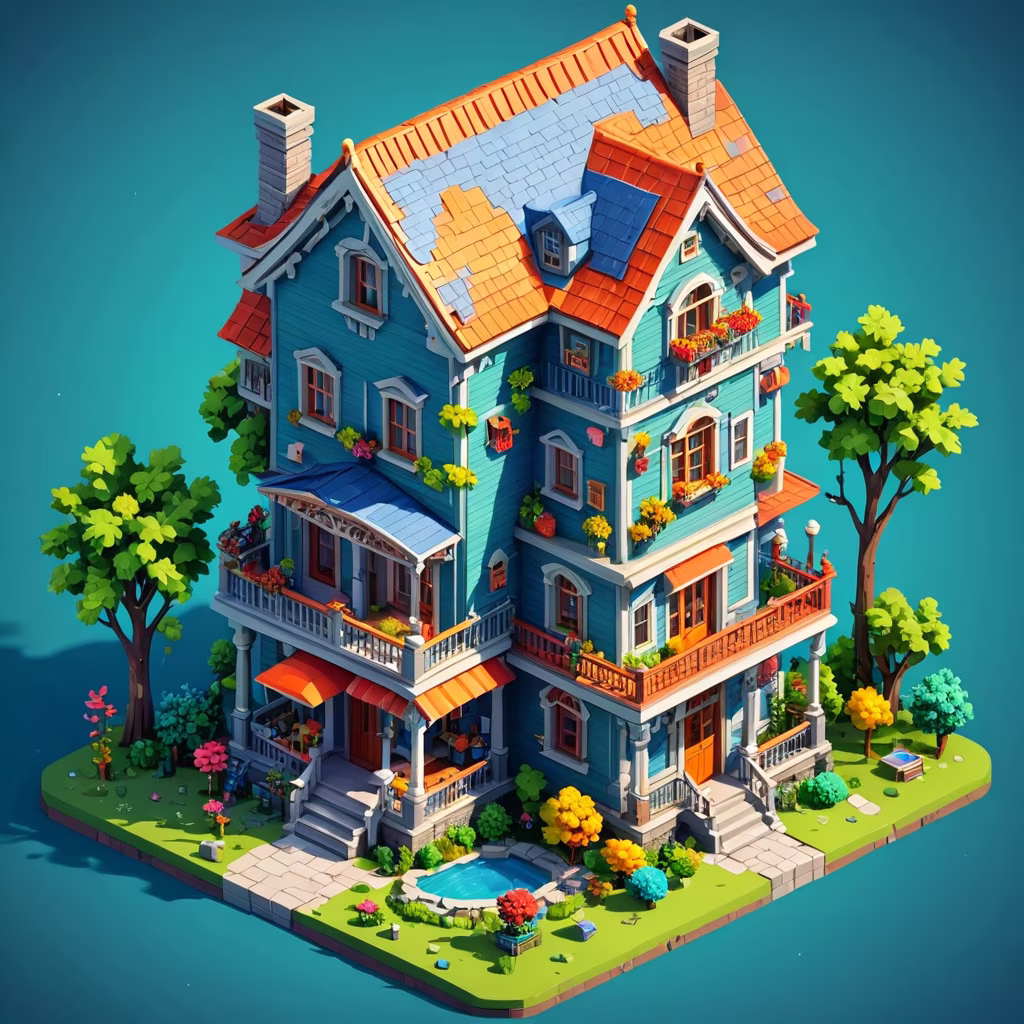 Prompt: House on a white background, no surrounding, Realistic Oil Painting, Low resolution, Assets collection