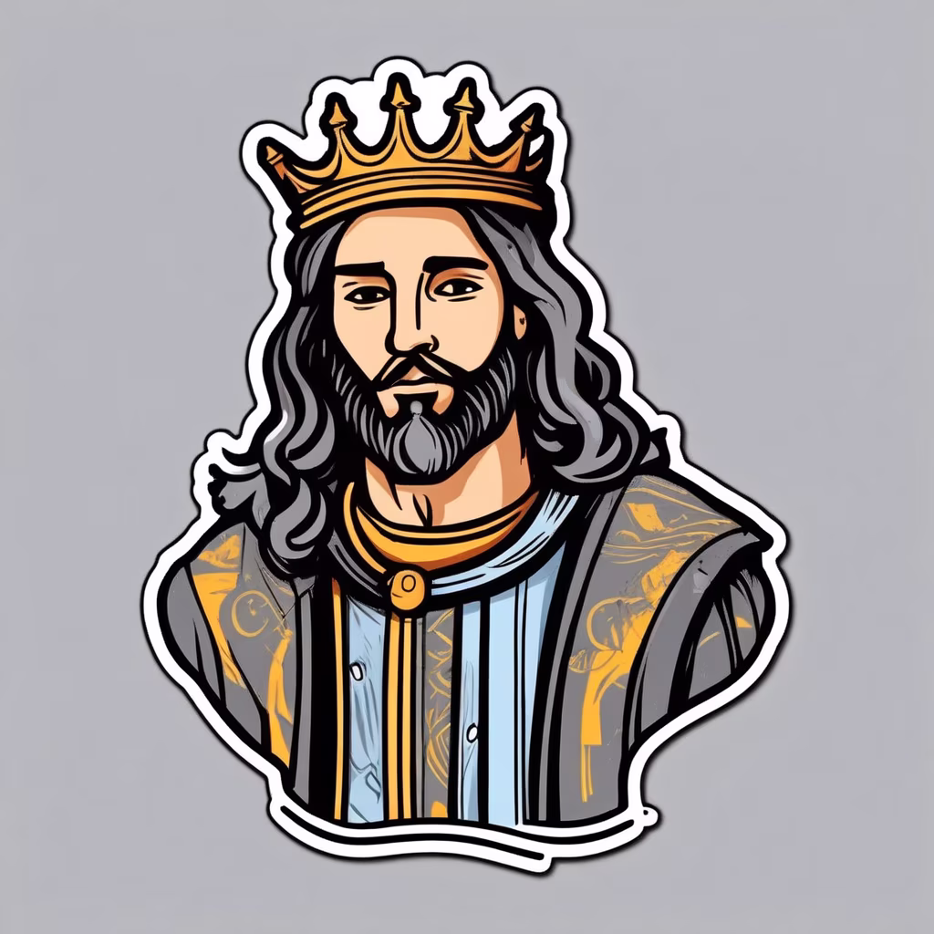 Prompt: Asimple 3 color designWith The Headof Jesus Christ tilting his headup and looking to the right with the Crown