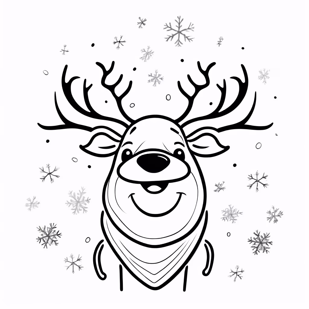 Prompt: (A lovable character of a funny Christmase reindeer face), adorable, charming, cute and quirky, white background, black and white, crisp drawing line, cartoon style