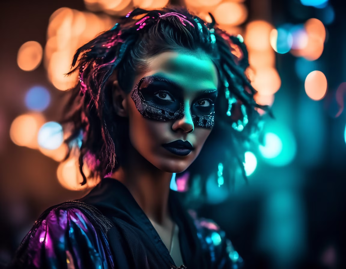 Prompt: Ethereal, glowing visage, eerie, otherworldly gaze, spectral, shadowy texture, twisted, nightmarish features, dark, mystical aura. (and then she decided to party. breathtaking, stunning, uhd, 4k, sharp focus, bokeh, dof)